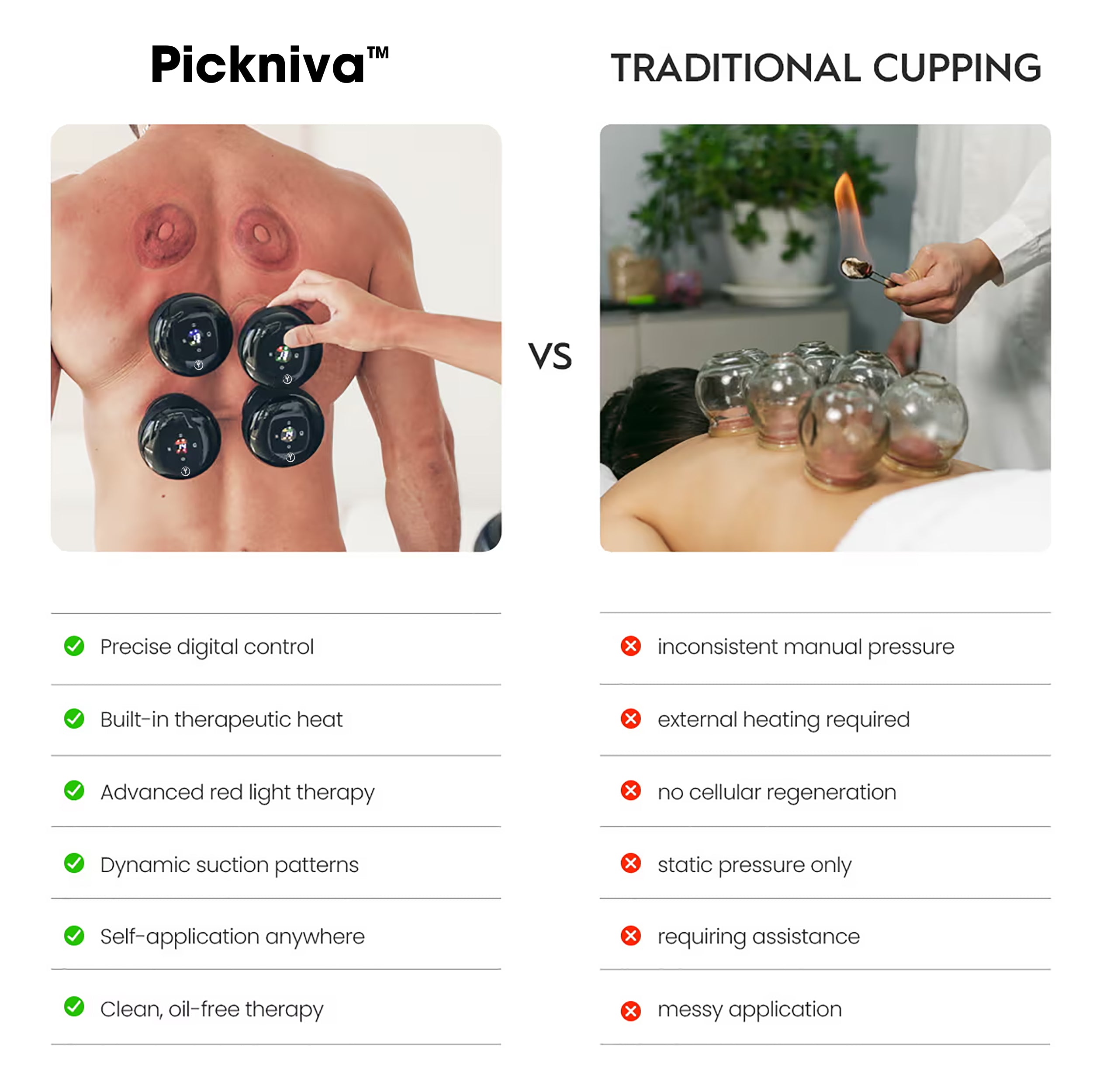 Pickniva™ Smart Cupping relieves muscle tension, improves circulation, and speeds